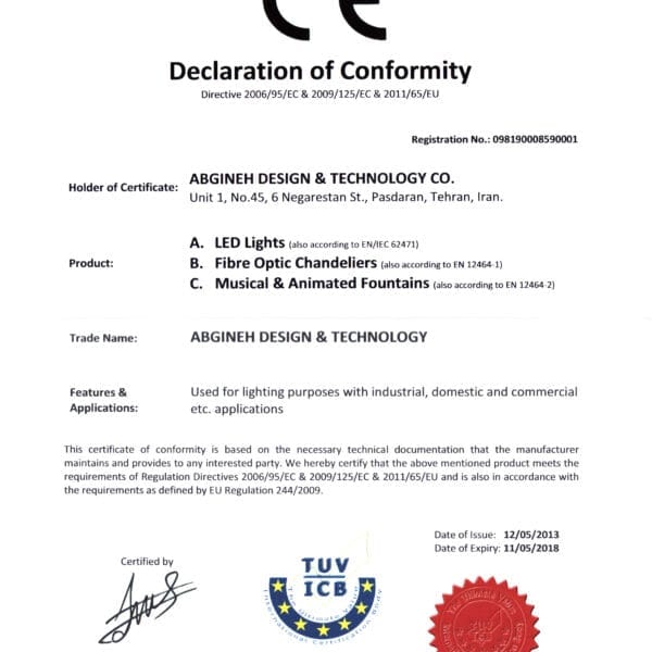 - تولید انواع چراغهای زیر آبی جهت نورپردازی آبنماها و فواره ها.