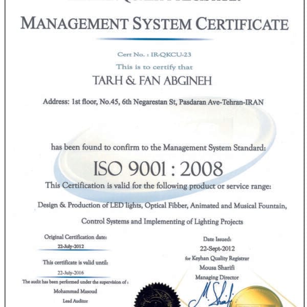 طراحی و ساخت انواع سیستم های سخت افزاری و نرم افزاری در حوزه روشنایی ، آبنماهای متحرک و موزیکال و نورپردازی ساختمان با بکارگیری کارشناسان مجرب الکترونیک ، نرم افزار، طراحی صنعتی و مکانیک سیالات ثمره تلاش مجموعه فنی و مهندسی و تحقیقاتی شرکت در هفت سال گذشته است که اهم موارد به شرح زیر می باشد: