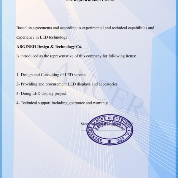 - توانمندی درک صحیح سیستمهای نوین و بروز دنیا همچون تکنیکهایLVD، Solar، LED Lighting ، Laser Lighting و امکان ارائه مشاوره و خدمات درصورت نیاز.