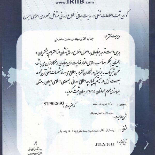 - طراحی نورپردازی و تأمین تجهیزات ساختمانهای شرکت ایراتل، شهرک دریا ویلا، نوشهر