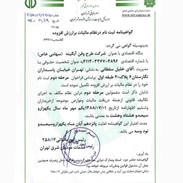 - تأمین تجهیزات و آجرای آبنمای واقع در ادارات مرکزی بانک ملی ایران، تهران