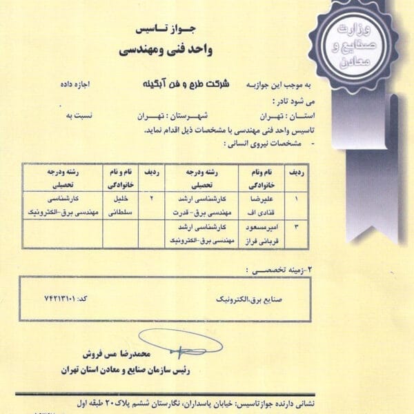 - طراحی مهندسی، ساخت و تولید – یا تامین محصولات در حوزه های نور، آب